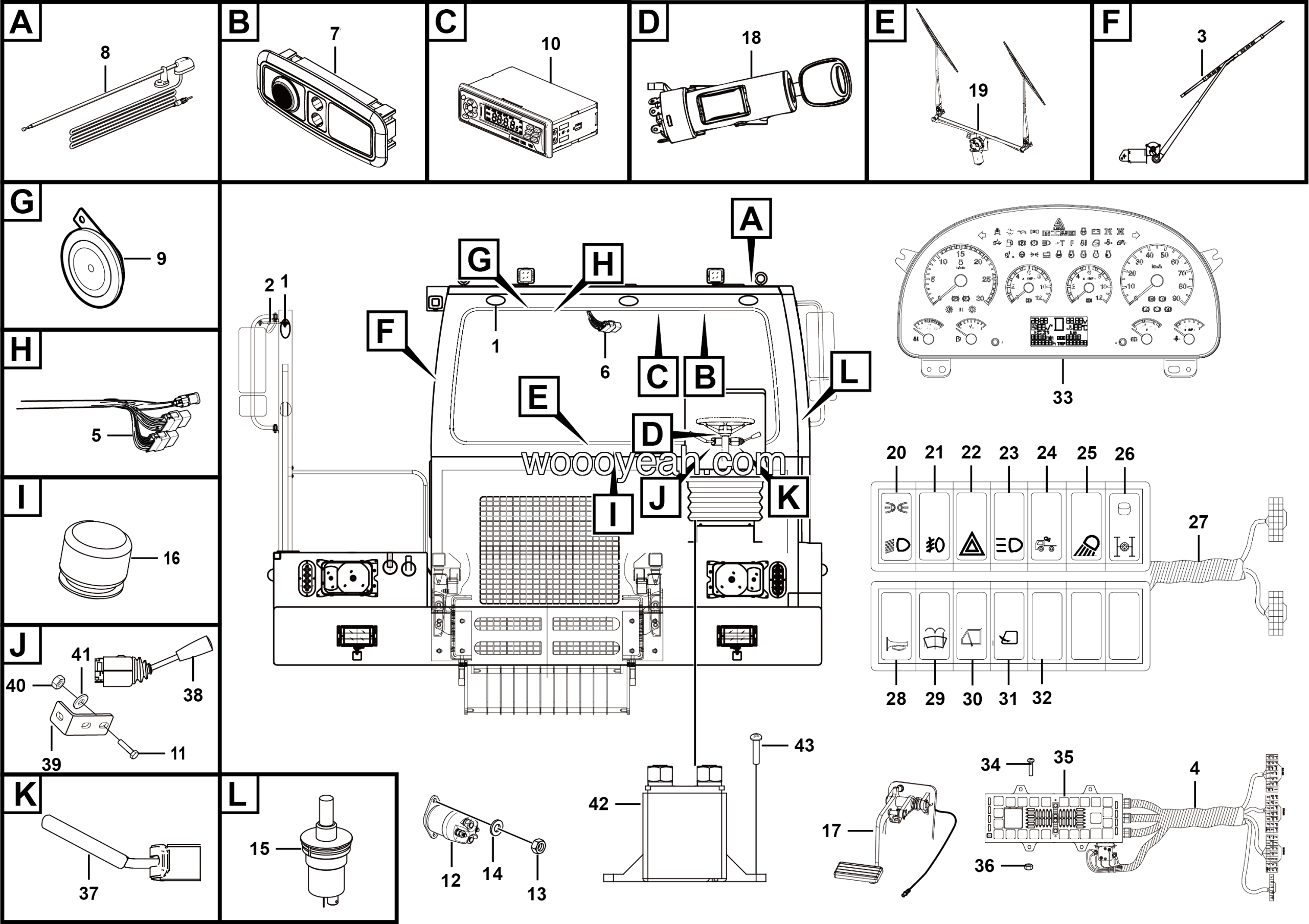 | 20 | Horn rocker switch JK939C | 4130000315 | 1 |