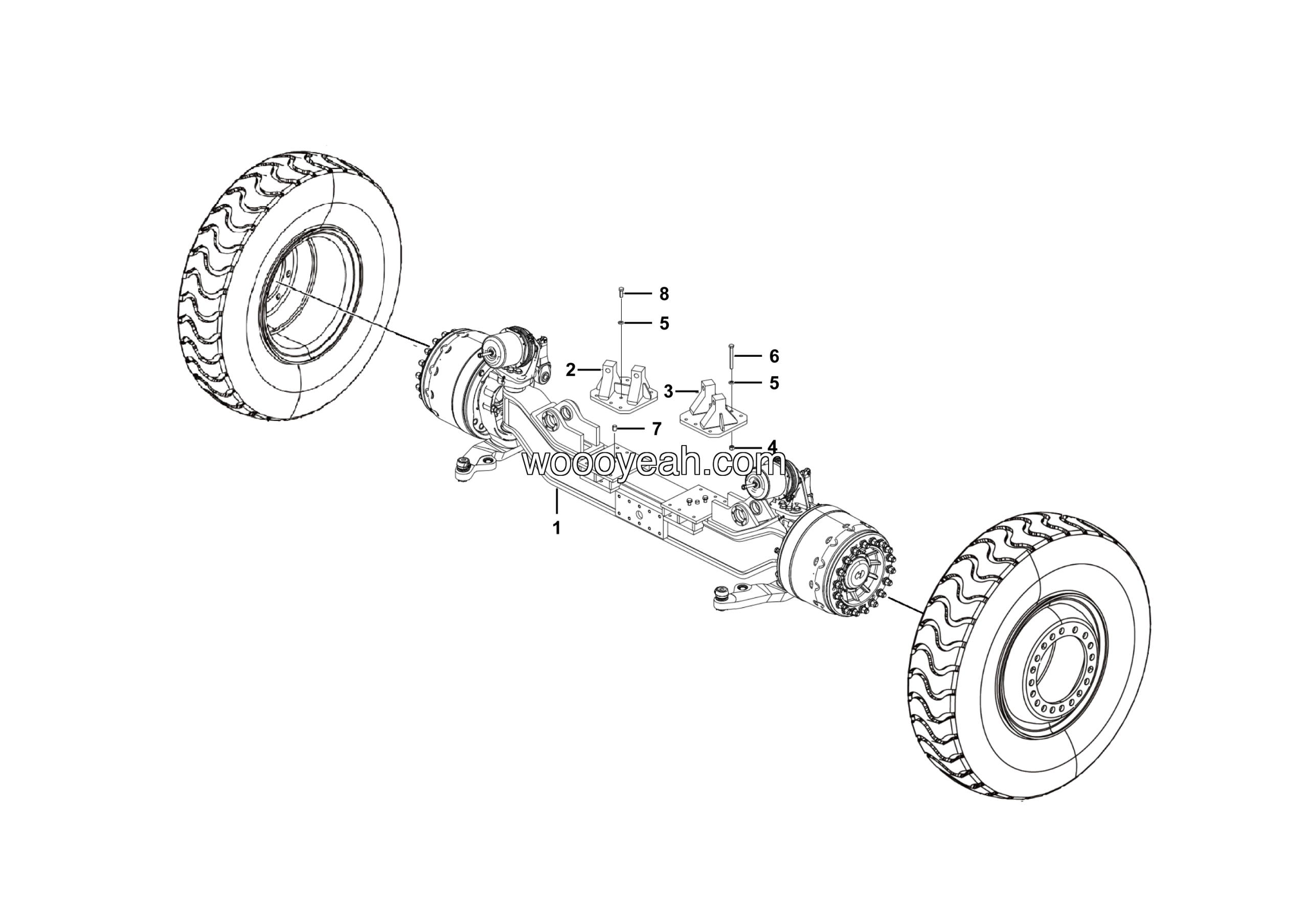 LGMG Off-Highway Dump Truck 2024 – Front axle installation assy HD25T – D0600-2706010666.S1A
